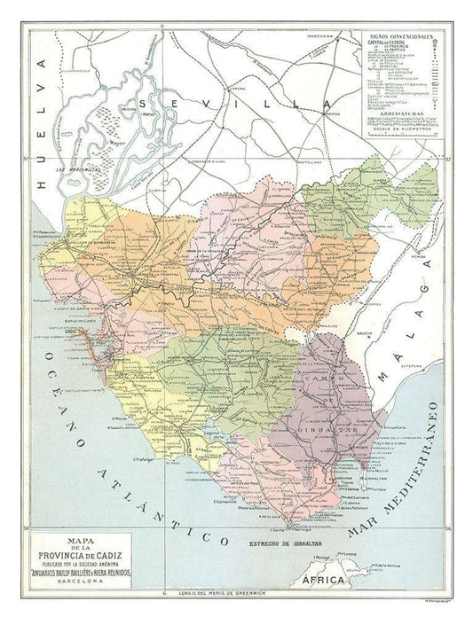 Cadiz Province Spain - Pompido 1913 White Modern Wood Framed Art Print with Double Matting by Pompido