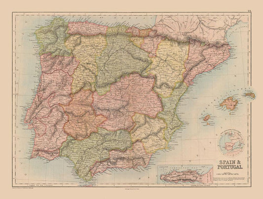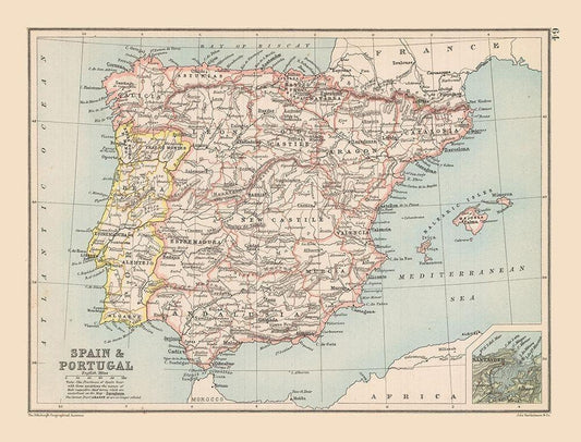 Spain Portugal - Bartholomew 1892 White Modern Wood Framed Art Print with Double Matting by Bartholomew