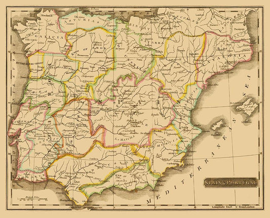 Spain Portugal - Lucas 1823 White Modern Wood Framed Art Print with Double Matting by Lucas