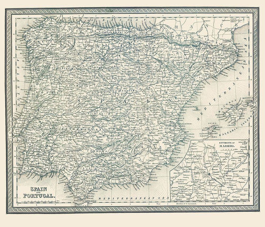 Spain Portugal - Mitchell 1848 White Modern Wood Framed Art Print with Double Matting by Mitchell