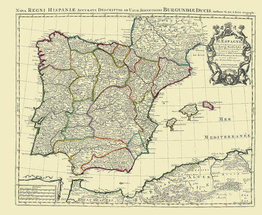 Spain Portugal - Covens 1742 White Modern Wood Framed Art Print with Double Matting by Covens