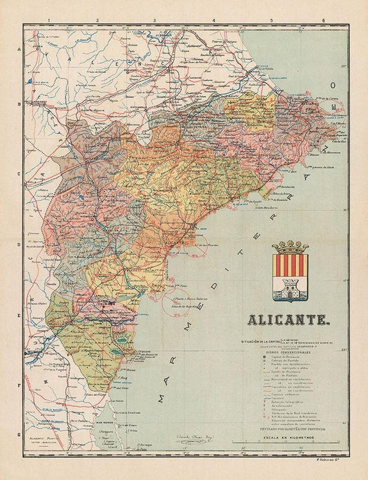 Northeast Spain - Letts 1883 White Modern Wood Framed Art Print with Double Matting by Letts