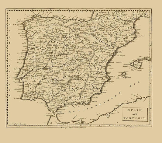 Spain Portugal - Thomas 1812 White Modern Wood Framed Art Print with Double Matting by Thomas