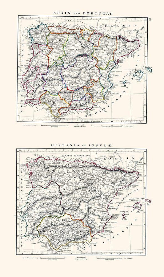 Spain Portugal - Arrowsmith 1828 White Modern Wood Framed Art Print with Double Matting by Arrowsmith