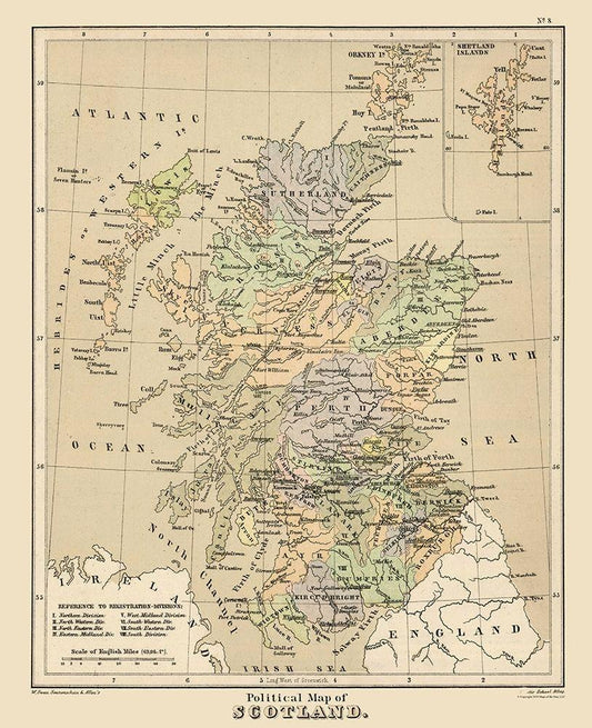 Northern Scotland - Statistical - Letts 1883 White Modern Wood Framed Art Print with Double Matting by Letts