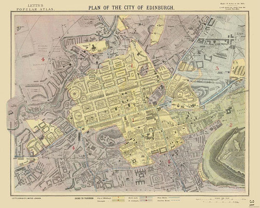 Scotland - Edinburgh - Plan - Letts 1883 White Modern Wood Framed Art Print with Double Matting by Letts