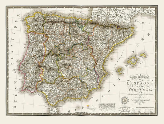 Spain Portugal - Brue 1824 White Modern Wood Framed Art Print with Double Matting by Brue