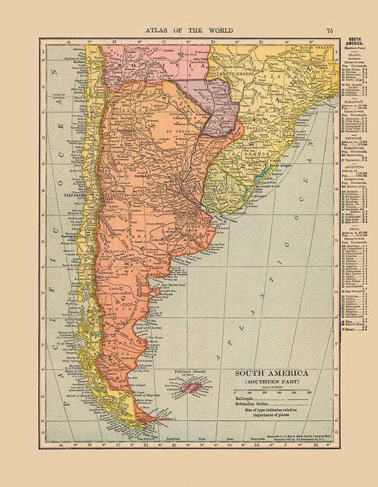 South America Chile Argentina Uruguay - Cram 1892 White Modern Wood Framed Art Print with Double Matting by Cram