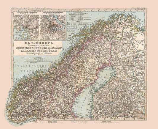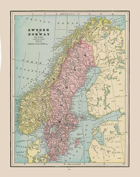Europe Sweden Norway - Cram 1892 White Modern Wood Framed Art Print with Double Matting by Cram
