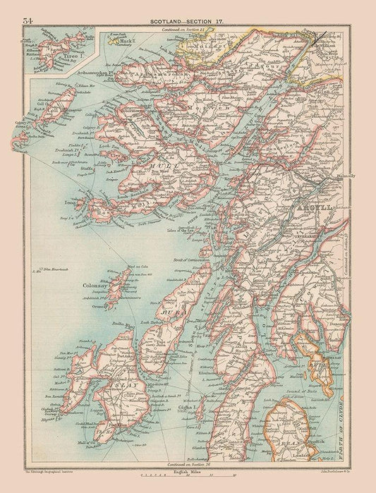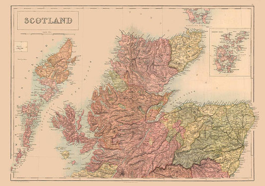 Scotland - Bartholomew 1892 White Modern Wood Framed Art Print with Double Matting by Bartholomew