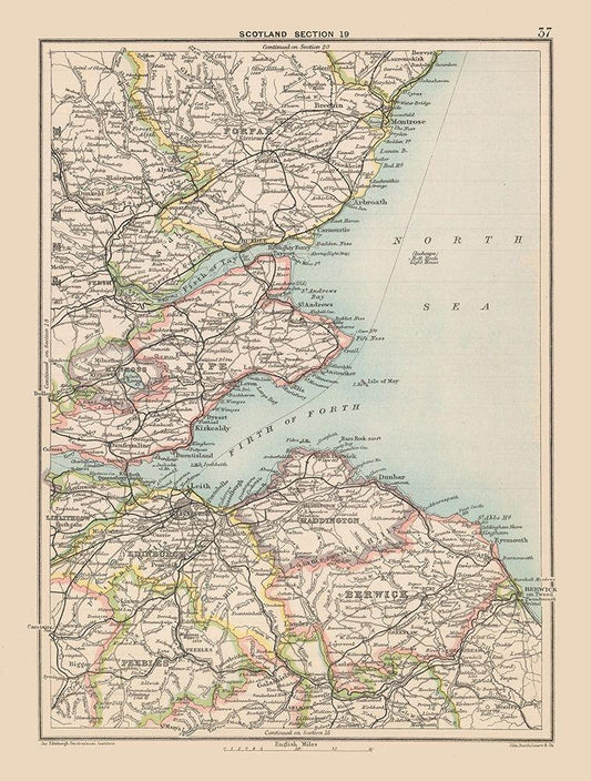 Southeast Scotland - Bartholomew 1892 White Modern Wood Framed Art Print with Double Matting by Bartholomew