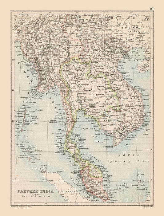 South Asia India - Bartholomew 1892 White Modern Wood Framed Art Print with Double Matting by Bartholomew