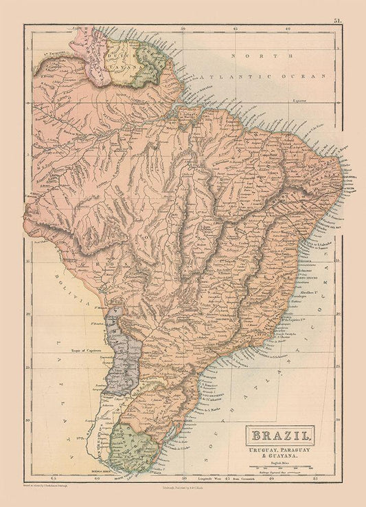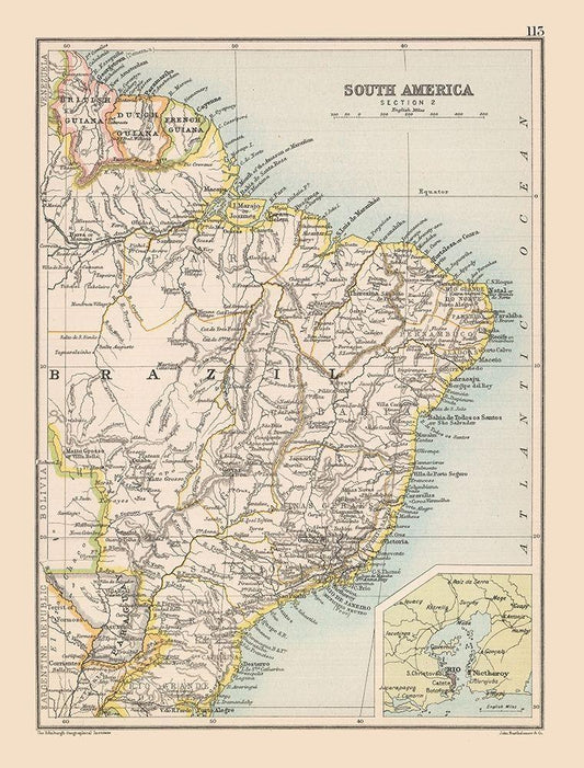 Southeast Brazil South America - Bartholomew 1892 White Modern Wood Framed Art Print with Double Matting by Bartholomew