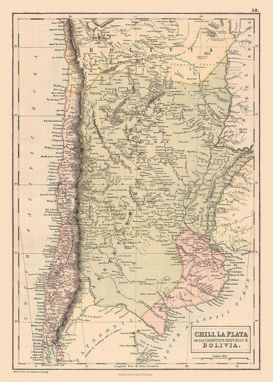 South America Argentina Bolivia Chile - Black 1867 White Modern Wood Framed Art Print with Double Matting by Black