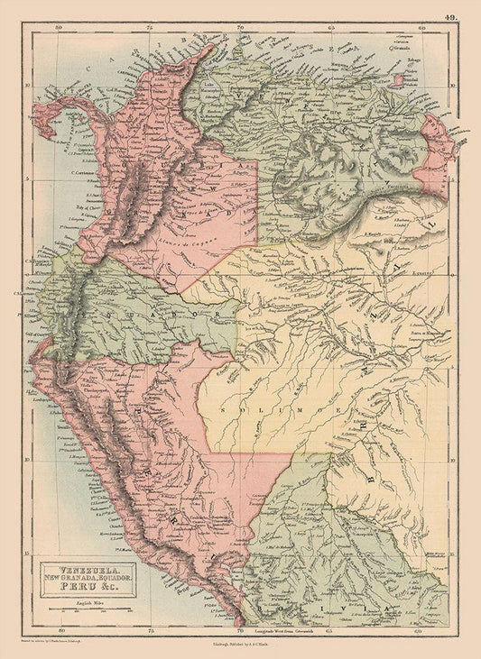 Andes Region South America - Stieler 1885 White Modern Wood Framed Art Print with Double Matting by Stieler