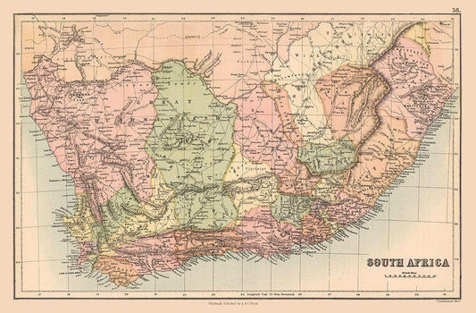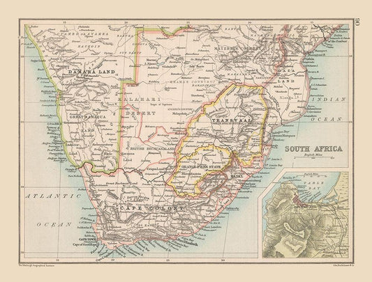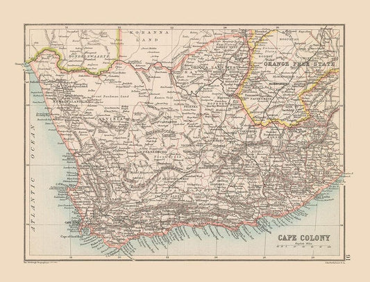 Cape Colony South Africa - Bartholomew 1892 White Modern Wood Framed Art Print with Double Matting by Bartholomew