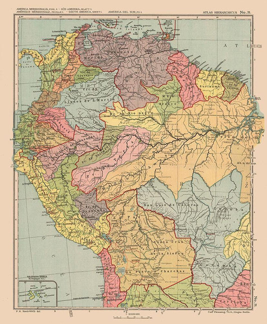 South America Brazil Suriname - Stieler 1885 White Modern Wood Framed Art Print with Double Matting by Stieler