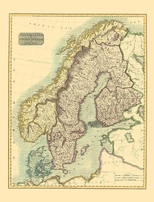 Scandinavia Sweden Denmark Norway - Thomson 1814 White Modern Wood Framed Art Print with Double Matting by Thomson