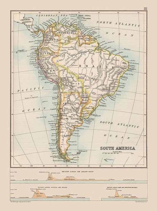 Elevation South America - Bartholomew 1892 White Modern Wood Framed Art Print with Double Matting by Bartholomew