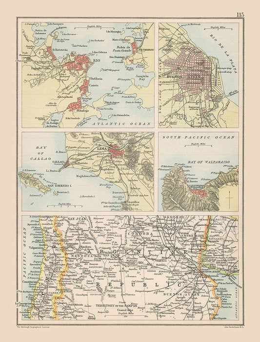Bays South America - Bartholomew 1892 White Modern Wood Framed Art Print with Double Matting by Bartholomew