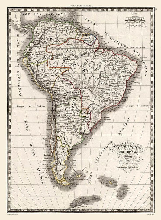 South America - Monin 1839 White Modern Wood Framed Art Print with Double Matting by Monin