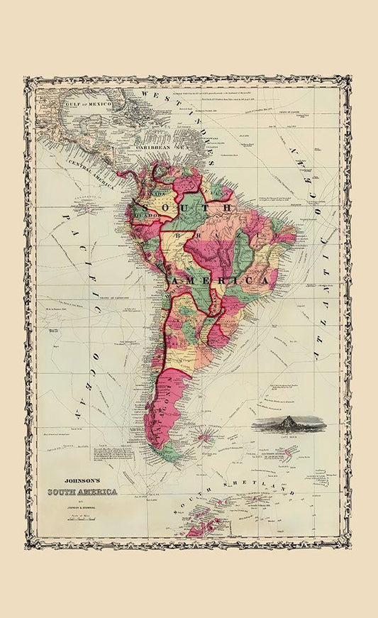 South America - Johnson 1860 White Modern Wood Framed Art Print with Double Matting by Johnson