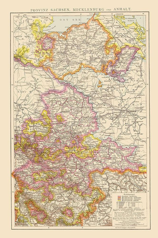Saxony Mecklenburg Region Germany - Velhagen 1881 White Modern Wood Framed Art Print with Double Matting by Velhagen