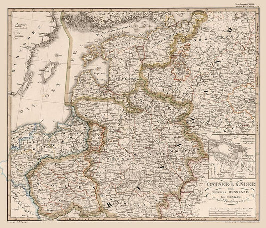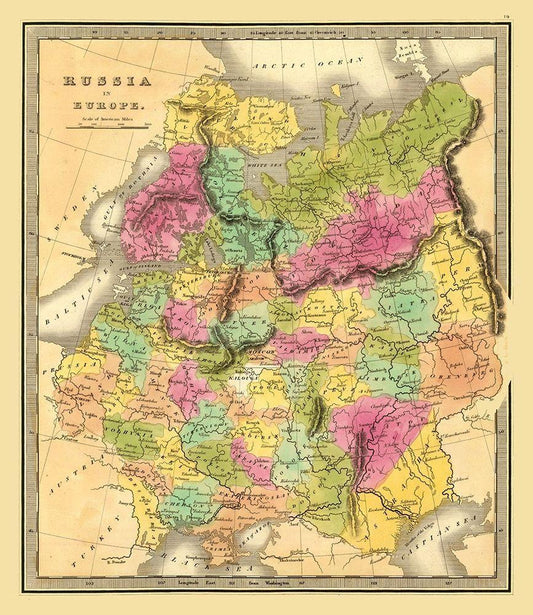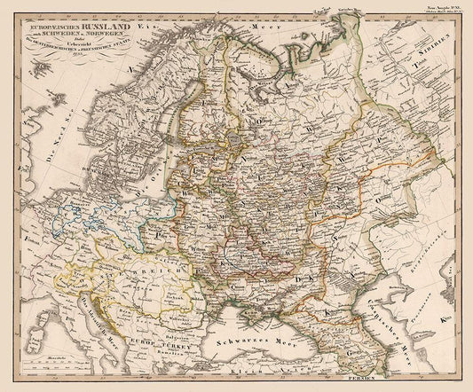 Western Russia - Stieler 1834 White Modern Wood Framed Art Print with Double Matting by Stieler
