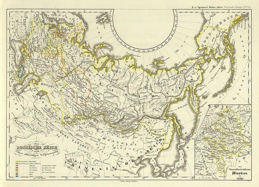 Asia Russia - Stich 1845 White Modern Wood Framed Art Print with Double Matting by Stich