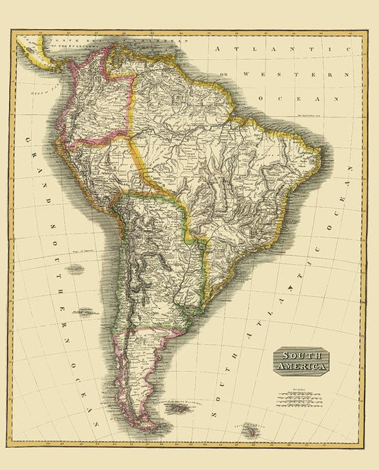 South America - Thomson 1815 White Modern Wood Framed Art Print with Double Matting by Thomson