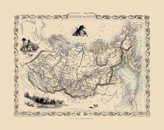 Asia Russia - Tallis 1851 White Modern Wood Framed Art Print with Double Matting by Tallis