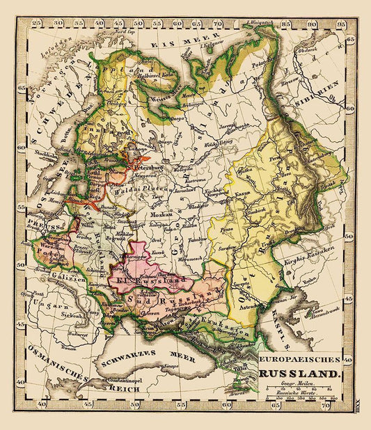 Russia Ukraine - Stieler 1852 White Modern Wood Framed Art Print with Double Matting by Stieler
