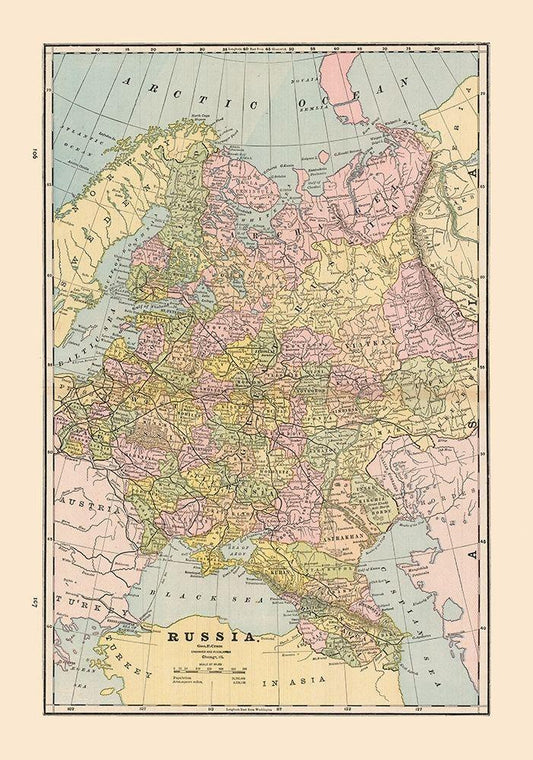 Russia - Cram 1892 White Modern Wood Framed Art Print with Double Matting by Cram