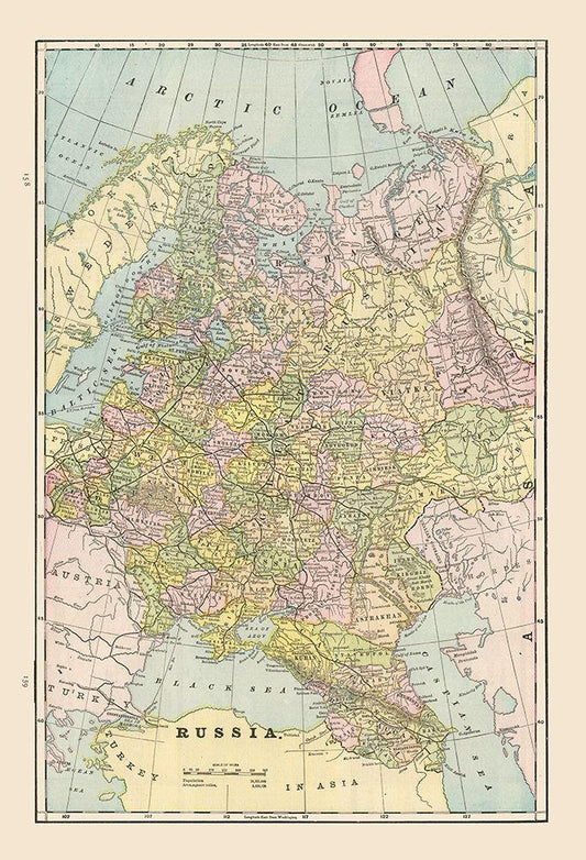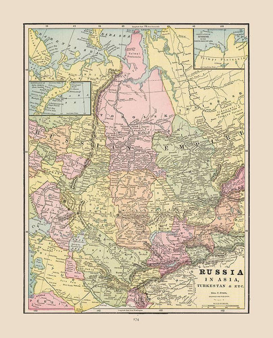 Russian Empire in Asia Russia - Cram 1892 White Modern Wood Framed Art Print with Double Matting by Cram