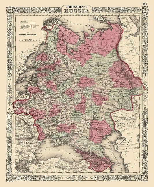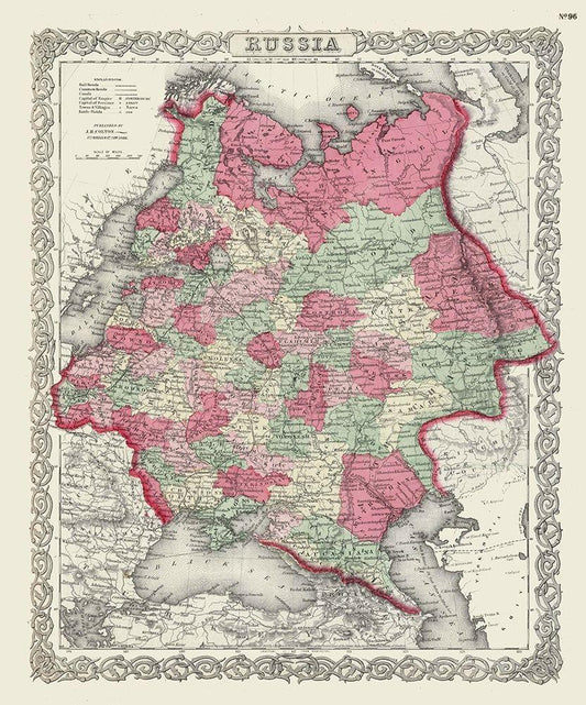 Russia - Johnson 1864 White Modern Wood Framed Art Print with Double Matting by Johnson