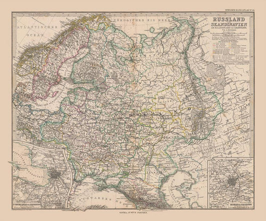 Scandinavia Russia - Stieler 1885 White Modern Wood Framed Art Print with Double Matting by Stieler