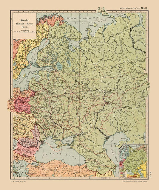 Europe Russia - Schrader 1908 White Modern Wood Framed Art Print with Double Matting by Schrader