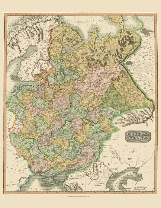 Russia - Thomson 1815 White Modern Wood Framed Art Print with Double Matting by Thomson