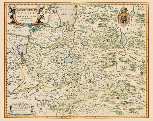 Europe Russia - Blaeu 1638 White Modern Wood Framed Art Print with Double Matting by Blaeu