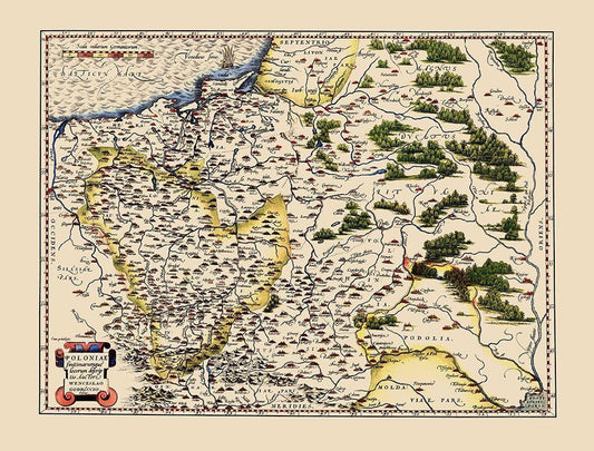 Eastern Europe Poland - Ortelius 1587 White Modern Wood Framed Art Print with Double Matting by Ortelius
