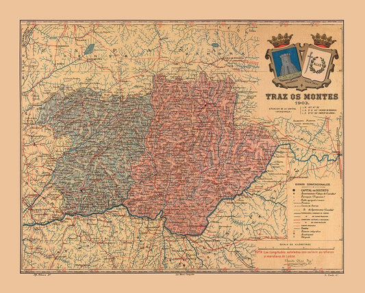 Europe Portugal Tras os Montes 1903 - Martine 1904 White Modern Wood Framed Art Print with Double Matting by Martine