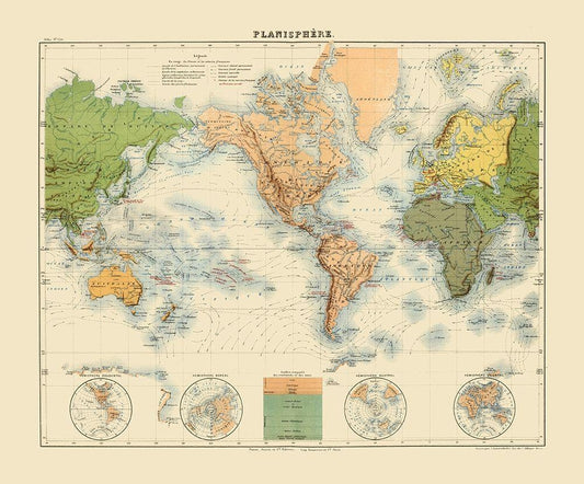 Planisphere - Migeon 1892 White Modern Wood Framed Art Print with Double Matting by Migeon