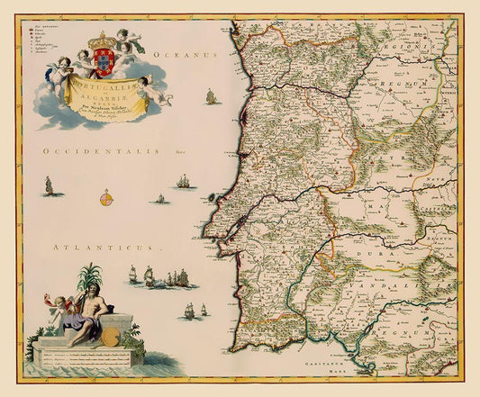 Iberian Peninsula Portugal - Visscher 1681 White Modern Wood Framed Art Print with Double Matting by Visscher