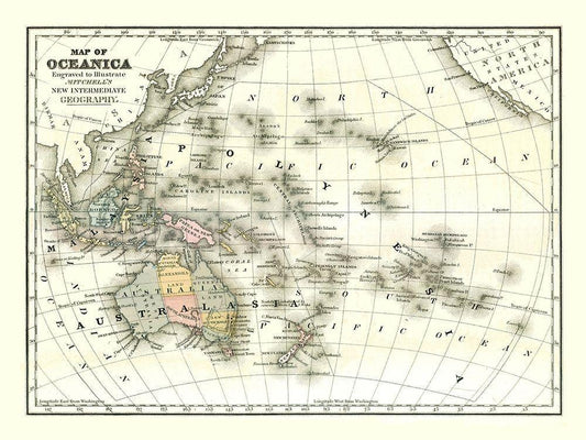 Oceania - Mitchell 1869 White Modern Wood Framed Art Print with Double Matting by Mitchell