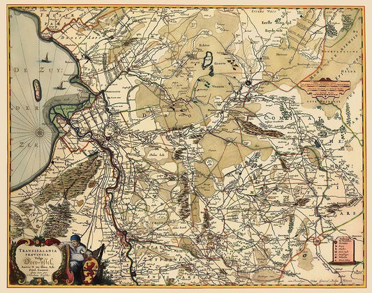 Overijssel Province Netherlands - Visscher 1681 White Modern Wood Framed Art Print with Double Matting by Visscher