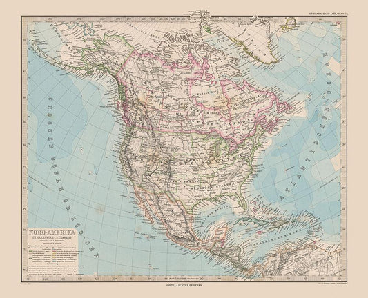 North America - Stieler 1885 White Modern Wood Framed Art Print with Double Matting by Stieler