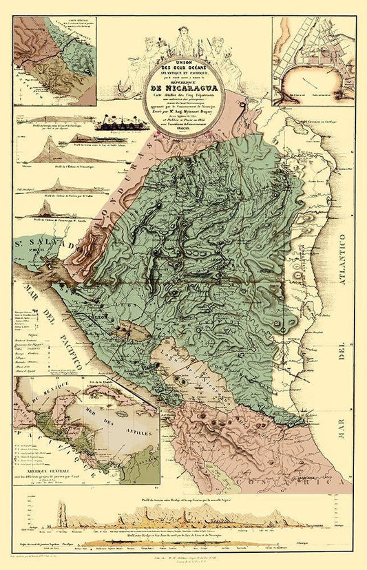Central America Nicaragua - Jocelyn 1856 White Modern Wood Framed Art Print with Double Matting by Jocelyn