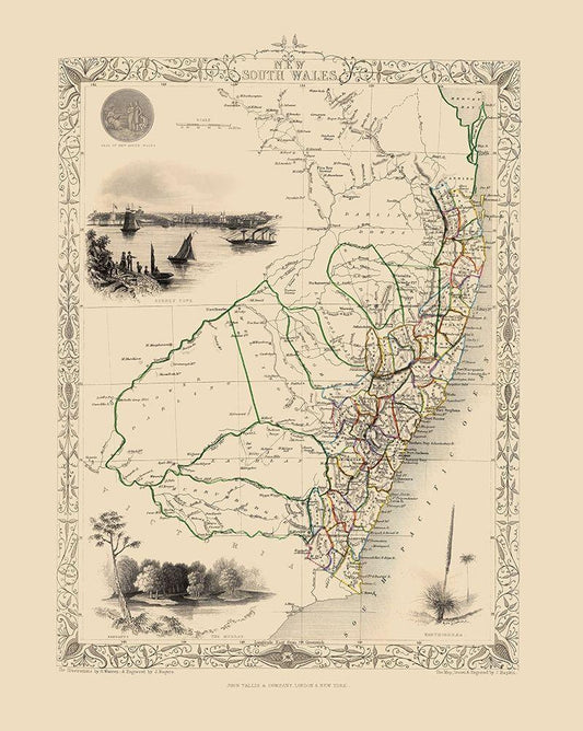New South Wales Van Diemens Land Australia White Modern Wood Framed Art Print with Double Matting by Tallis