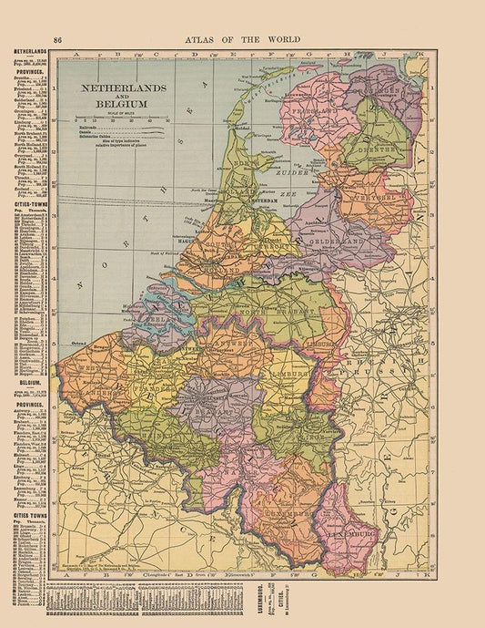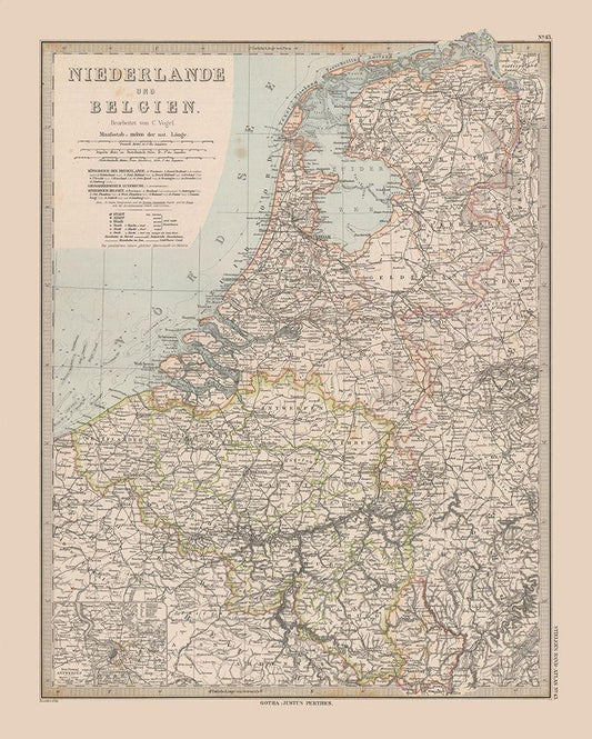 Europe Netherlands Belgium - Stieler 1885 White Modern Wood Framed Art Print with Double Matting by Stieler