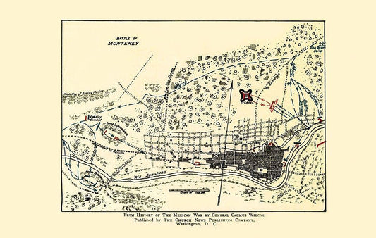 Monterey Battle Map Mexican American War 1892 White Modern Wood Framed Art Print with Double Matting by Church News Publishing